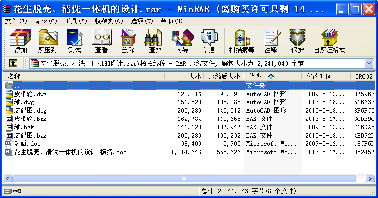 花生脫殼、清洗一體機的設計全套圖紙_下載(rar格式) 成套圖紙