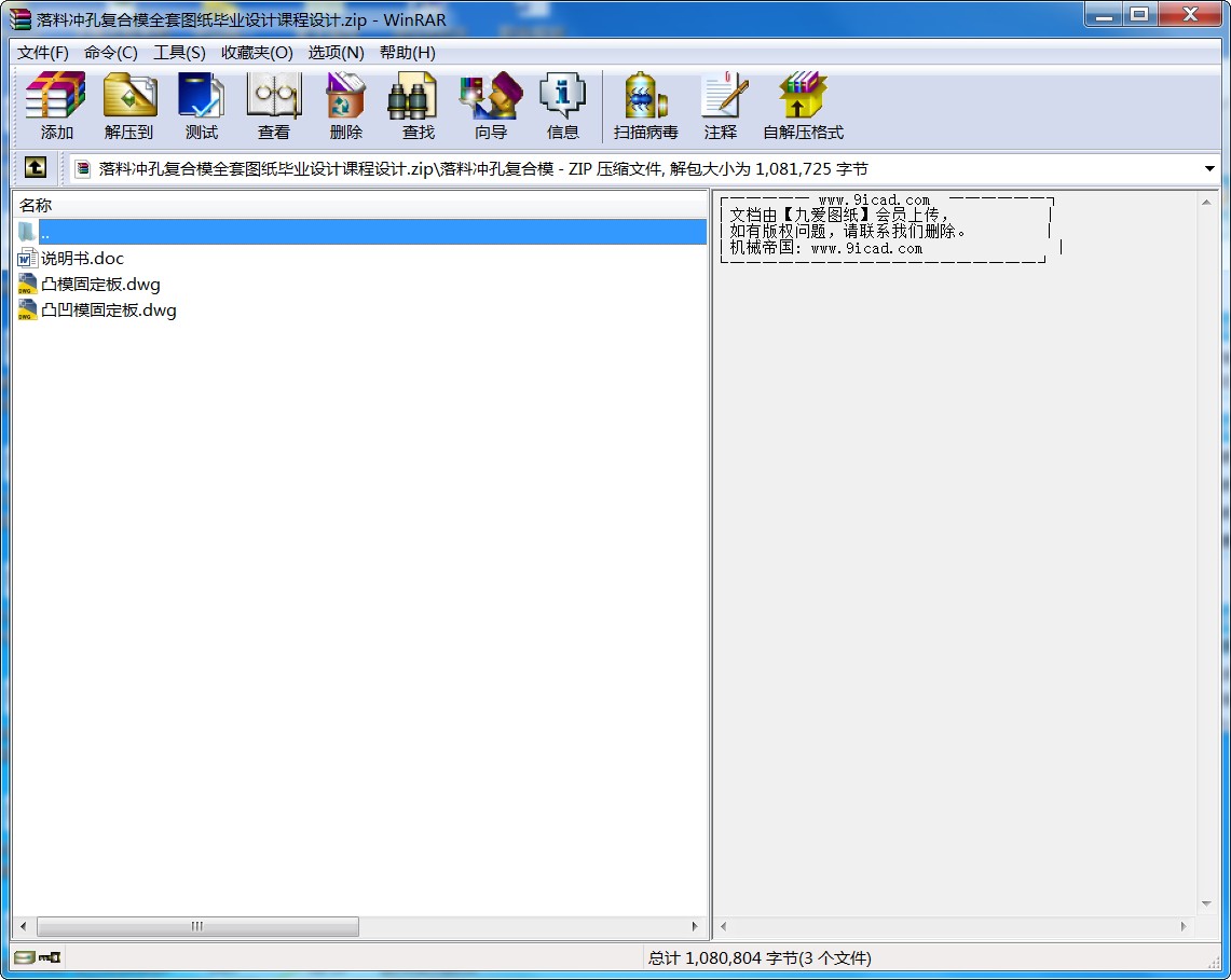 落料沖孔復合模全套圖紙畢業設計課程設計_下載(zip格式) 成套圖紙